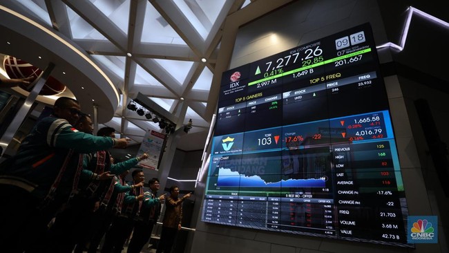 IHSG mencatatkan lonjakan signifikan pada pembukaan perdagangan hari ini. Berdasarkan data pasar, IHSG tengah diperdagangkan pada posisi menguat sebesar 2,81% sejak pembukaan dan berada di level 7.166,17 pada pukul 10.15. Penguatan indeks utama ini sejalan dengan meningkatnya aktivitas transaksi dan apresiasi harga pada sejumlah saham di Bursa Efek Indonesia. Seiring dengan pergerakan positif IHSG tersebut, sejumlah saham terpantau mengalami kenaikan harga yang signifikan dan masuk ke dalam jajaran top gainers.