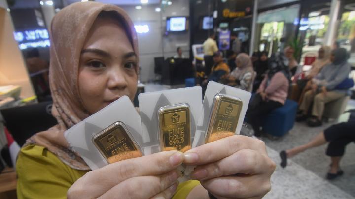 HARGA emas Antam yang dipantau di laman Logam Mulia dari Jakarta, Jumat, pukul 08.59 WIB, tak bergerak, tetap berada di angka Rp 2.805.000 per gram. Begitu pula untuk harga beli kembali (buyback) turut stabil di Rp 2.610.000 per gram. Harga emas Antam sewaktu-waktu bisa berubah.